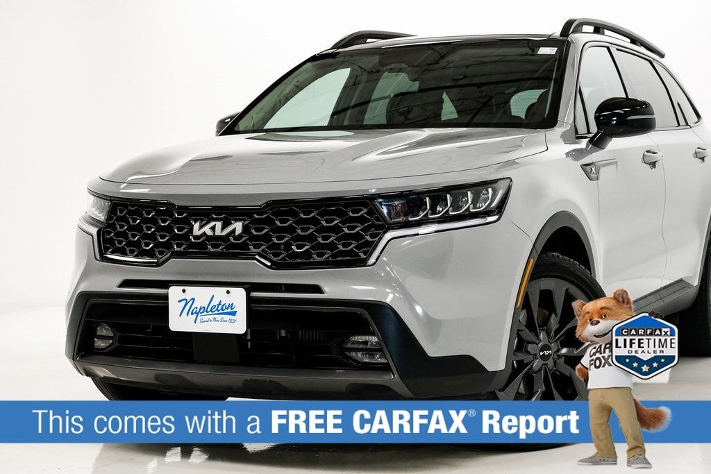 Certified. CARFAX One-Owner. Wolf Gray 2023 Kia Sorento 4D Sport Utility X-Line EX 2.5L I4 DGI Turbocharged DOHC 16V LEV3-ULEV70 281hp AWD Clean CARFAX.