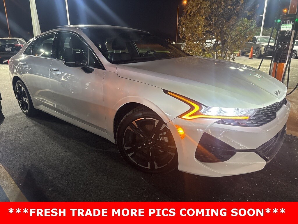 This K5 is well equipped with GT-Line Panoramic Sunroof Package (Gloss Black Trim, LED Interior Lighting, and Panoramic Sunroof), GT-Line Premium Package (Forward Collision Avoidance-Assist, Highway Driving Assist, LED Projection Headlamps, and Smart Cruise Control w/Stop & Go), Kia Certified Pre-Owned Certified, 4-Wheel Disc Brakes, 6 Speakers, ABS brakes, Air Conditioning, Alloy wheels, AM/FM radio: SiriusXM, Apple CarPlay & Android Auto, Auto High-beam Headlights, Automatic temperature control, Brake assist, Bumpers: body-color, Cargo Tray, Carpeted Floor Mats, Cloth/SynTex Seat Trim, Delay-off headlights, Driver door bin, Driver vanity mirror, Dual front impact airbags, Dual front side impact airbags, Electronic Stability Control, Four wheel independent suspension, Front anti-roll bar, Front Bucket Seats, Front Center Armrest, Front dual zone A/C, Front fog lights, Front reading lights, Fully automatic headlights, Heated door mirrors, Heated Front Bucket Seats, Heated front seats, Illuminated entry, Knee airbag, Leather steering wheel, Low tire pressure warning, Navigation System, Occupant sensing airbag, Outside temperature display, Overhead airbag, Overhead console, Panic alarm, Passenger door bin, Passenger vanity mirror, Power door mirrors, Power driver seat, Power steering, Power windows, Radio data system, Radio: AM/FM/MP3 Audio System, Rear anti-roll bar, Rear seat center armrest, Rear side impact airbag, Rear window defroster, Remote keyless entry, Security system, Speed control, Speed-sensing steering, Split folding rear seat, Spoiler, Sport steering wheel, Steering wheel mounted audio controls, Tachometer, Telescoping steering wheel, Tilt steering wheel, Traction control, Trip computer, Turn signal indicator mirrors, Variably intermittent wipers, and Wheels: 18" Gloss Black Machined Finish Alloy.