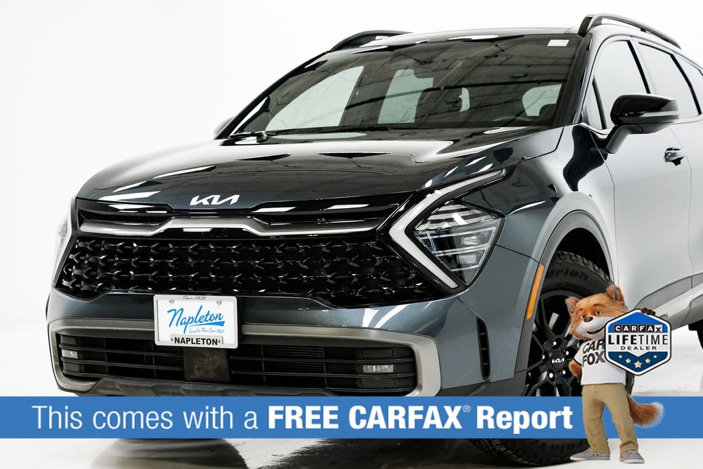 This Sportage is well equipped with Kia Certified Pre-Owned Certified, AWD, Apple CarPlay & Android Auto, harman/kardon® Speakers, Heated Front Bucket Seats, Heated steering wheel, Power Liftgate, Power moonroof, 4-Wheel Disc Brakes, 8 Speakers, ABS brakes, Air Conditioning, Alloy wheels, AM/FM radio: SiriusXM, Auto High-beam Headlights, Automatic temperature control, Axle Ratio: 3.648, Brake assist, Bumpers: body-color, Carpeted Floor Mats, Compass, Delay-off headlights, Driver door bin, Driver vanity mirror, Dual front impact airbags, Dual front side impact airbags, Electronic Stability Control, Emergency communication system, Four wheel independent suspension, Front anti-roll bar, Front Bucket Seats, Front Center Armrest, Front dual zone A/C, Front fog lights, Front reading lights, Fully automatic headlights, Heated door mirrors, Heated front seats, Illuminated entry, Leather Shift Knob, Leather steering wheel, Low tire pressure warning, Memory seat, Navigation System, Occupant sensing airbag, Outside temperature display, Overhead airbag, Overhead console, Panic alarm, Passenger door bin, Passenger vanity mirror, Power door mirrors, Power driver seat, Power steering, Power windows, Premium Leatherette Seat Trim, Radio: AM/FM/HD Premium Audio System, Rain sensing wipers, Rear anti-roll bar, Rear reading lights, Rear seat center armrest, Rear side impact airbag, Rear window defroster, Rear window wiper, Remote keyless entry, Security system, Speed control, Speed-sensing steering, Split folding rear seat, Spoiler, Steering wheel mounted audio controls, Tachometer, Telescoping steering wheel, Tilt steering wheel, Traction control, Trip computer, Turn signal indicator mirrors, Variably intermittent wipers, and Wheels: 17" Matte Black Alloy.