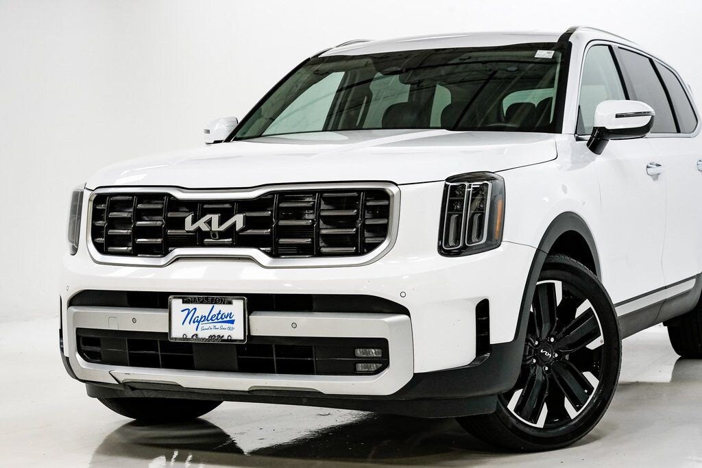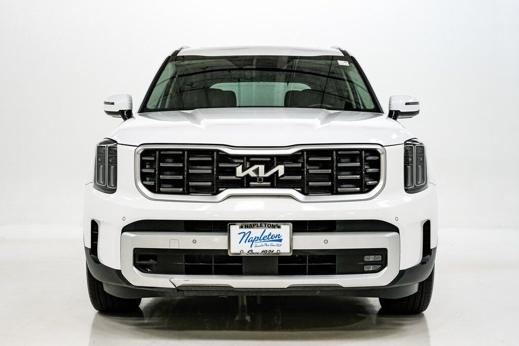 This Telluride is well equipped with Kia Certified Pre-Owned Certified, Apple CarPlay & Android Auto, harman/kardon® Speakers, Heated & Ventilated Front Bucket Seats, Heated steering wheel, Power Liftgate, Power moonroof, Smart Key w/ Push Button and Remote Start, 10 Speakers, 3.648 Axle Ratio, 3rd row seats: split-bench, 4-Wheel Disc Brakes, ABS brakes, Air Conditioning, Alloy wheels, AM/FM radio: SiriusXM, Auto High-beam Headlights, Auto-dimming Rear-View mirror, Automatic temperature control, Brake assist, Bumpers: body-color, Cargo Tray Seat Back, Carpet Floor Mats, Compass, Delay-off headlights, Driver door bin, Driver vanity mirror, Dual front impact airbags, Dual front side impact airbags, Electronic Stability Control, Emergency communication system: 911 Connect, Exterior Parking Camera Rear, Four wheel independent suspension, Front anti-roll bar, Front Bucket Seats, Front Center Armrest, Front dual zone A/C, Front fog lights, Front reading lights, Fully automatic headlights, Garage door transmitter: HomeLink, Heated door mirrors, Heated front seats, Illuminated entry, Knee airbag, Leather Seat Trim, Leather Shift Knob, Leather steering wheel, Low tire pressure warning, Memory seat, Navigation System, Occupant sensing airbag, Outside temperature display, Overhead airbag, Overhead console, Panic alarm, Passenger door bin, Passenger vanity mirror, Power door mirrors, Power driver seat, Power passenger seat, Power steering, Power windows, Radio data system, Radio: AM/FM Harman Kardon Audio System, Rear air conditioning, Rear anti-roll bar, Rear audio controls, Rear reading lights, Rear side impact airbag, Rear window defroster, Rear window wiper, Reclining 3rd row seat, Remote keyless entry, Roof rack: rails only, Security system, Speed control, Speed-sensing steering, Split folding rear seat, Spoiler, Steering wheel mounted audio controls, Tachometer, Telescoping steering wheel, Tilt steering wheel, Traction control, Trip computer, Turn signal indicator mirrors, Variably intermittent wipers, Ventilated front seats, and Wheels: 20" x 7.5" Black Finish.