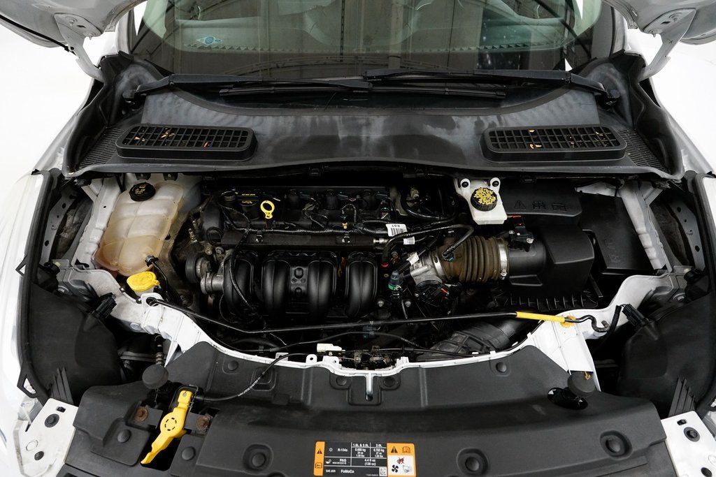 This Escape is well equipped with 3.21 Axle Ratio, 4-Wheel Disc Brakes, 6 Speakers, ABS brakes, Air Conditioning, Alloy wheels, AM/FM radio: SiriusXM, Brake assist, Bumpers: body-color, CD player, Cloth Buckets w/60/40 Split Rear Seat, Compass, Delay-off headlights, Driver door bin, Driver vanity mirror, Dual front impact airbags, Dual front side impact airbags, Electronic Stability Control, Exterior Parking Camera Rear, Four wheel independent suspension, Front anti-roll bar, Front Bucket Seats, Front Center Armrest, Front fog lights, Front reading lights, Fully automatic headlights, Illuminated entry, Knee airbag, Low tire pressure warning, Occupant sensing airbag, Outside temperature display, Overhead airbag, Overhead console, Panic alarm, Passenger door bin, Passenger vanity mirror, Power door mirrors, Power driver seat, Power steering, Power windows, Radio data system, Radio: AM/FM Single CD/MP3, Rear anti-roll bar, Rear seat center armrest, Rear window defroster, Rear window wiper, Remote keyless entry, Speed control, Speed-sensing steering, Split folding rear seat, Steering wheel mounted audio controls, SYNC Communications & Entertainment System, Tachometer, Telescoping steering wheel, Tilt steering wheel, Traction control, Trip computer, Variably intermittent wipers, and Wheels: 17" Alloy Sparkle Silver Painted Aluminum.