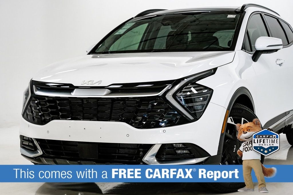 This Sportage is well equipped with Kia Certified Pre-Owned Certified, Apple CarPlay & Android Auto, harman/kardon® Speakers, Heated & Ventilated Front Bucket Seats, Heated steering wheel, Power Liftgate, Power moonroof, 4-Wheel Disc Brakes, 8 Speakers, ABS brakes, Air Conditioning, Alloy wheels, AM/FM radio: SiriusXM, Auto High-beam Headlights, Automatic temperature control, Axle Ratio: 3.648, Brake assist, Bumpers: body-color, Carpeted Floor Mats, Compass, Delay-off headlights, Driver door bin, Driver vanity mirror, Dual front impact airbags, Dual front side impact airbags, Electronic Stability Control, Emergency communication system, Four wheel independent suspension, Front anti-roll bar, Front Bucket Seats, Front Center Armrest, Front dual zone A/C, Front fog lights, Front reading lights, Fully automatic headlights, Heated door mirrors, Heated front seats, Illuminated entry, Leather Shift Knob, Leather steering wheel, Low tire pressure warning, Memory seat, Navigation System, Occupant sensing airbag, Outside temperature display, Overhead airbag, Overhead console, Panic alarm, Passenger door bin, Passenger vanity mirror, Power door mirrors, Power driver seat, Power passenger seat, Power steering, Power windows, Premium Leatherette Seat Trim, Radio: AM/FM/HD Premium Audio System, Rain sensing wipers, Rear anti-roll bar, Rear reading lights, Rear seat center armrest, Rear side impact airbag, Rear window defroster, Rear window wiper, Remote keyless entry, Security system, Speed control, Speed-sensing steering, Split folding rear seat, Spoiler, Steering wheel mounted audio controls, Tachometer, Telescoping steering wheel, Tilt steering wheel, Traction control, Trip computer, Turn signal indicator mirrors, Variably intermittent wipers, Ventilated front seats, and Wheels: 19" Gloss Black Alloy.