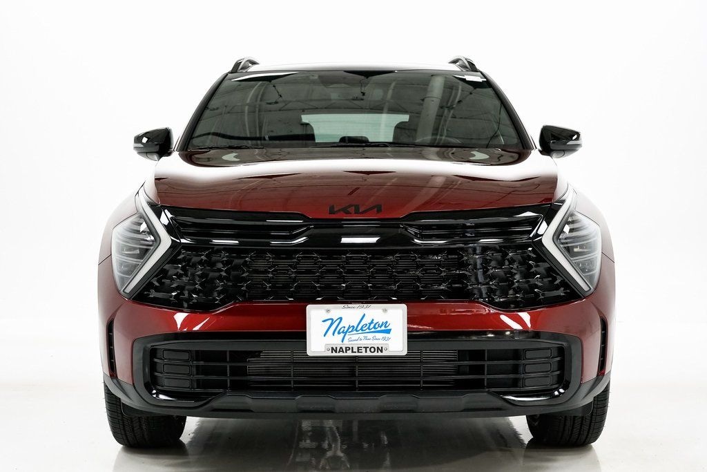 This Sportage is well equipped with Premium Package (Illuminated Dual Vanity Mirrors, LED Interior Lighting, Panoramic Sunroof, and Smart Power Liftgate), AWD, Apple CarPlay & Android Auto, Heated Front Bucket Seats, Navigation System, Rain sensing wipers, Rear window wiper, Telescoping steering wheel, Variably intermittent wipers, 4-Wheel Disc Brakes, 6 Speakers, ABS brakes, Air Conditioning, Alloy wheels, AM/FM radio: SiriusXM, Auto High-beam Headlights, Automatic temperature control, Brake assist, Bumpers: body-color, Cargo Cover, Carpet Floor Mats X-Line, Compass, Cross Bars X-Line, Delay-off headlights, Driver door bin, Driver vanity mirror, Dual front impact airbags, Dual front side impact airbags, Electronic Stability Control, Emergency communication system, Four wheel independent suspension, Front anti-roll bar, Front Bucket Seats, Front Center Armrest, Front dual zone A/C, Fully automatic headlights, Heated door mirrors, Heated front seats, Illuminated entry, Leather steering wheel, Low tire pressure warning, Occupant sensing airbag, Outside temperature display, Overhead airbag, Overhead console, Panic alarm, Passenger door bin, Passenger vanity mirror, Power door mirrors, Power driver seat, Power steering, Power windows, Premium Leatherette Seat Trim, Radio: AM/FM/HD Audio System, Rear anti-roll bar, Rear seat center armrest, Rear side impact airbag, Rear window defroster, Remote keyless entry, Security system, Speed control, Speed-sensing steering, Split folding rear seat, Spoiler, Steering wheel mounted audio controls, Tachometer, Tilt steering wheel, Traction control, Trip computer, Turn signal indicator mirrors, and Wheels: 19" x 7.5J Gloss Black Alloy.