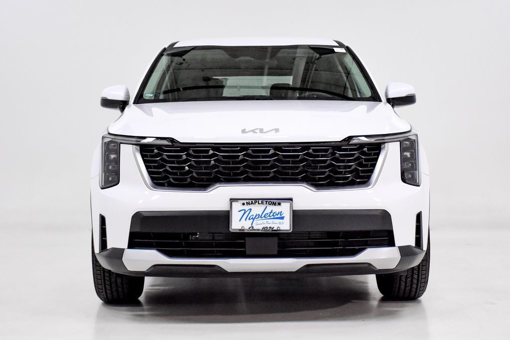 This Sorento is well equipped with Kia Certified Pre-Owned Certified, Apple CarPlay & Android Auto, Smart Key w/ Push Button and Remote Start, 3.798 Axle Ratio, 3rd row seats: split-bench, 4-Wheel Disc Brakes, 6 Speakers, 7.0J x 17" Alloy Wheels, ABS brakes, Air Conditioning, Alloy wheels, AM/FM radio: SiriusXM, Auto High-beam Headlights, Brake assist, Bumpers: body-color, Carpeted Floor Mats, Cloth Seat Trim, Delay-off headlights, Driver door bin, Driver vanity mirror, Dual front impact airbags, Dual front side impact airbags, Electronic Stability Control, Emergency communication system: 911 Connect, Exterior Parking Camera Rear, Four wheel independent suspension, Front anti-roll bar, Front Bucket Seats, Front Center Armrest, Front reading lights, Fully automatic headlights, Heated door mirrors, Illuminated entry, Knee airbag, Low tire pressure warning, Occupant sensing airbag, Outside temperature display, Overhead airbag, Overhead console, Panic alarm, Passenger door bin, Passenger vanity mirror, Power door mirrors, Power steering, Power windows, Radio data system, Radio: AM/FM Audio System, Rear anti-roll bar, Rear reading lights, Rear seat center armrest, Rear side impact airbag, Rear window defroster, Rear window wiper, Remote keyless entry, Security system, Speed control, Speed-sensing steering, Split folding rear seat, Spoiler, Steering wheel mounted audio controls, Tachometer, Telescoping steering wheel, Tilt steering wheel, Traction control, Trip computer, Turn signal indicator mirrors, and Variably intermittent wipers.