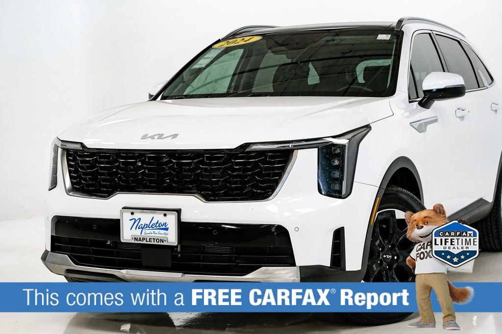 Certified. Priced below KBB Fair Purchase Price! Glacial White Pearl 2024 Kia Sorento 4D Sport Utility S 2.5L I4 DGI DOHC 16V LEV3-SULEV30 191hp AWD Clean CARFAX.