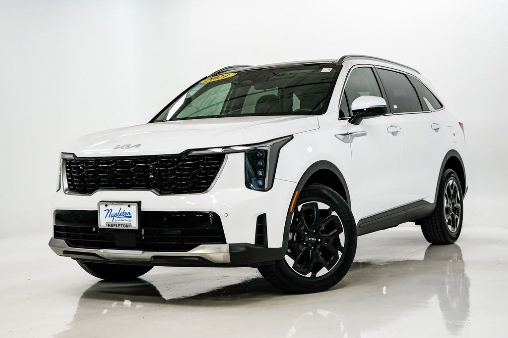 This Sorento is well equipped with Panoramic Sunroof Package (Panoramic Power Sunroof w/Power Sunshade and LED Interior Lighting), Kia Certified Pre-Owned Certified, Apple CarPlay & Android Auto, Heated Front Bucket Seats, Smart Key w/ Push Button and Remote Start, 3rd row seats: split-bench, 4-Wheel Disc Brakes, 4.081 Axle Ratio, 6 Speakers, ABS brakes, Air Conditioning, Alloy wheels, AM/FM radio: SiriusXM, Auto High-beam Headlights, Automatic temperature control, Brake assist, Bumpers: body-color, Carpeted Floor Mats, Delay-off headlights, Driver door bin, Driver vanity mirror, Dual front impact airbags, Dual front side impact airbags, Electronic Stability Control, Emergency communication system: 911 Connect, Exterior Parking Camera Rear, Four wheel independent suspension, Front anti-roll bar, Front Bucket Seats, Front Center Armrest, Front dual zone A/C, Front fog lights, Front reading lights, Fully automatic headlights, Heated door mirrors, Heated front seats, Illuminated entry, Knee airbag, Leather Shift Knob, Leather steering wheel, Low tire pressure warning, Navigation System, Occupant sensing airbag, Outside temperature display, Overhead airbag, Overhead console, Panic alarm, Passenger door bin, Passenger vanity mirror, Power door mirrors, Power driver seat, Power steering, Power windows, Radio data system, Radio: AM/FM Audio System, Rear anti-roll bar, Rear reading lights, Rear seat center armrest, Rear side impact airbag, Rear window defroster, Rear window wiper, Remote keyless entry, Security system, Speed control, Speed-sensing steering, Split folding rear seat, Spoiler, Steering wheel mounted audio controls, SynTex Artificial Leather Seat Trim, Tachometer, Telescoping steering wheel, Tilt steering wheel, Traction control, Trip computer, Turn signal indicator mirrors, Variably intermittent wipers, and Wheels: 7.5J x 18" Alloy w/Machine Finish.