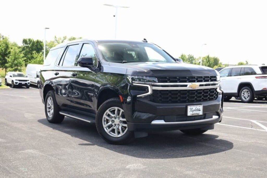 This Tahoe is well equipped with Driver Alert Package (Lane Change Alert w/Side Blind Zone Alert and Rear Cross Traffic Alert), License Plate Front Mounting Package, Preferred Equipment Group 1LS (Remote Start, 1st & 2nd Row Color-Keyed Carpeted Floor Mats, Color-Keyed Carpeting Floor Covering, Driver & Front Outboard Passenger Airbags, Floor Console w/Storage Area, LED Daytime Running Lamps, SiriusXM Radio w/360L, and Wrapped Steering Wheel), Apple CarPlay/Android Auto, Radio: Chevrolet Infotainment 3 System, 3.23 Rear Axle Ratio, 3rd row seats: split-bench, 4-Wheel Disc Brakes, 6 Speakers, 6-Speaker Audio System Feature, ABS brakes, Air Conditioning, Alloy wheels, AM/FM radio: SiriusXM with 360L, Auto High-beam Headlights, Automatic temperature control, Brake assist, Bumpers: body-color, Compass, Delay-off headlights, Driver door bin, Driver vanity mirror, Dual front impact airbags, Dual front side impact airbags, Electronic Stability Control, Emergency communication system: OnStar and Chevrolet connected services capable, Four wheel independent suspension, Front anti-roll bar, Front Bucket Seats, Front Center Armrest, Front dual zone A/C, Front High-Back Reclining Bucket Seats, Front reading lights, Fully automatic headlights, Heated door mirrors, Illuminated entry, Infotainment Display, Low tire pressure warning, Occupant sensing airbag, Outside temperature display, Overhead airbag, Overhead console, Panic alarm, Passenger door bin, Passenger vanity mirror, Power door mirrors, Power driver seat, Power passenger seat, Power steering, Power windows, Premium Cloth Seat Trim, Premium Smooth Ride Suspension, Rain sensing wipers, Rear air conditioning, Rear anti-roll bar, Rear reading lights, Rear seat center armrest, Rear window defroster, Rear window wiper, Remote keyless entry, Roof rack: rails only, Security system, Speed control, Speed-sensing steering, Split folding rear seat, Spoiler, Steering wheel mounted audio controls, Tachometer, Telescoping steering wheel, Tilt steering wheel, Traction control, Trip computer, Variably intermittent wipers, Voltmeter, and Wheels: 18" x 8.5" Bright Silver Painted Aluminum.