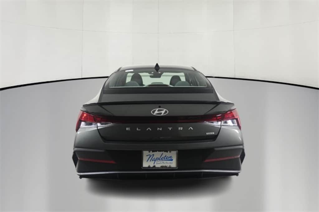 This Elantra Hybrid is well equipped with Option Group 01, I4, 17" x 7.0J Alloy Wheels, 4-Wheel Disc Brakes, 6 Speakers, ABS brakes, Air Conditioning, Alloy wheels, AM/FM radio: SiriusXM, Apple CarPlay & Android Auto, Auto High-beam Headlights, Automatic temperature control, Brake assist, Bumpers: body-color, Cargo Net, Carpeted Floor Mats, Delay-off headlights, Driver door bin, Driver vanity mirror, Dual front impact airbags, Dual front side impact airbags, Electronic Stability Control, Emergency communication system: Bluelink+, Exterior Parking Camera Rear, First Aid Kit, Front anti-roll bar, Front Bucket Seats, Front Center Armrest, Front dual zone A/C, Front reading lights, Front wheel independent suspension, Fully automatic headlights, Heated door mirrors, Illuminated entry, Leather Shift Knob, Leather steering wheel, Low tire pressure warning, Navigation System, Occupant sensing airbag, Outside temperature display, Overhead airbag, Overhead console, Panic alarm, Passenger door bin, Passenger vanity mirror, Power door mirrors, Power steering, Power windows, Premium Cloth Seat Trim, Radio: AM/FM/HD/SiriusXM Display Audio, Rear Bumper Applique, Rear side impact airbag, Rear window defroster, Remote keyless entry, Reversible Cargo Tray, Security system, Severe Weather Kit, Speed control, Speed-sensing steering, Spoiler, Steering wheel mounted audio controls, Tachometer, Telescoping steering wheel, Tilt steering wheel, Traction control, Trip computer, and Variably intermittent wipers.