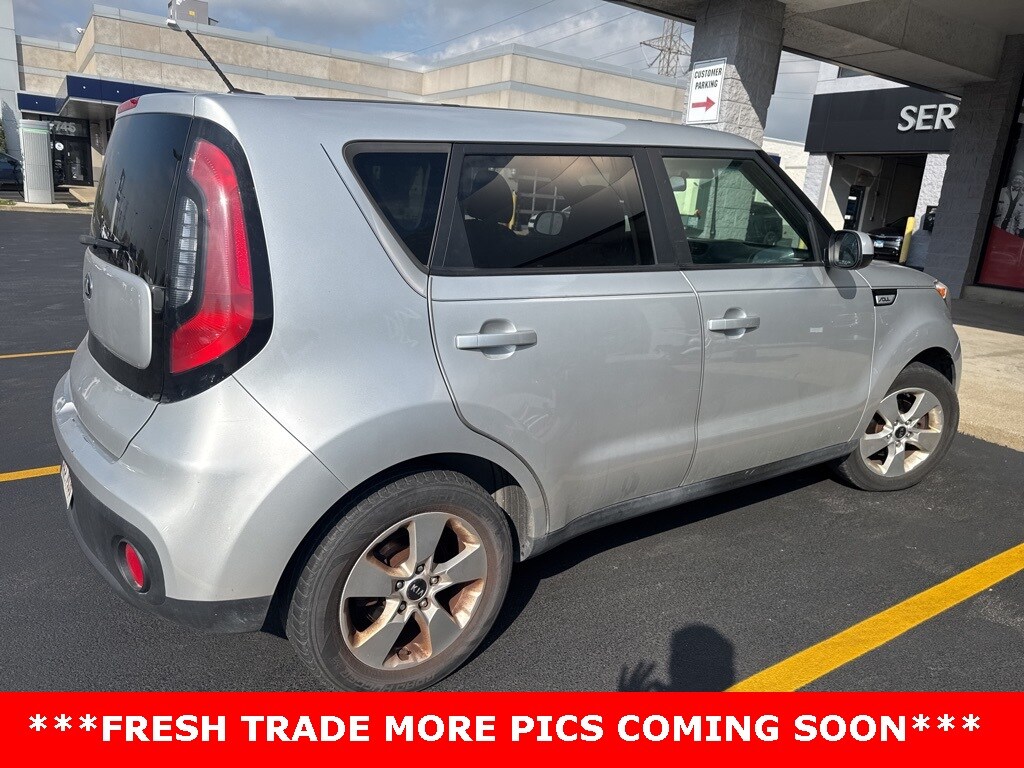 This Soul is well equipped with 16" Alloy Wheels, 4-Wheel Disc Brakes, 6 Speakers, 6-Way Adjustable Driver's Seat, ABS brakes, Air Conditioning, Alloy wheels, AM/FM radio: SiriusXM, Brake assist, Bumpers: body-color, Cargo Net, Cargo Tray and Seatback Cover, Carpeted Floor Mats, Cloth Seat Trim, Driver door bin, Driver vanity mirror, Dual front impact airbags, Dual front side impact airbags, Electronic Stability Control, Front anti-roll bar, Front Bucket Seats, Front Center Armrest, Front reading lights, Front wheel independent suspension, Illuminated entry, Low tire pressure warning, Occupant sensing airbag, Outside temperature display, Overhead airbag, Overhead console, Panic alarm, Passenger door bin, Passenger vanity mirror, Power door mirrors, Power steering, Power windows, Radio: AM/FM/MP3 Audio System, Rear window defroster, Rear window wiper, Remote keyless entry, Speed control, Speed-sensing steering, Split folding rear seat, Steering wheel mounted audio controls, Tachometer, Telescoping steering wheel, Tilt steering wheel, Traction control, Trip computer, and Variably intermittent wipers.