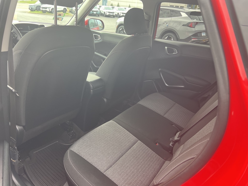 This Soul is well equipped with 17" Alloy Wheels, 4-Wheel Disc Brakes, 6 Speakers, ABS brakes, Air Conditioning, Alloy wheels, AM/FM radio, Apple CarPlay & Android Auto, Brake assist, Bumpers: body-color, Carpeted Floor Mats, Delay-off headlights, Driver door bin, Driver vanity mirror, Dual front impact airbags, Dual front side impact airbags, EC Mirror w/Compass & HomeLink, Electronic Stability Control, Exterior Parking Camera Rear, Front anti-roll bar, Front Bucket Seats, Front Center Armrest, Front reading lights, Front wheel independent suspension, Fully automatic headlights, Low tire pressure warning, Occupant sensing airbag, Outside temperature display, Overhead airbag, Overhead console, Passenger door bin, Passenger vanity mirror, Power door mirrors, Power driver seat, Power steering, Power windows, Premium Cloth Seat Trim, Radio: AM/FM/MP3 Audio System, Rear window defroster, Rear window wiper, Remote keyless entry, Speed control, Speed-sensing steering, Split folding rear seat, Steering wheel mounted audio controls, Tachometer, Telescoping steering wheel, Tilt steering wheel, Traction control, Trip computer, Variably intermittent wipers, and Wheels: 16" x 6.5 Alloy.