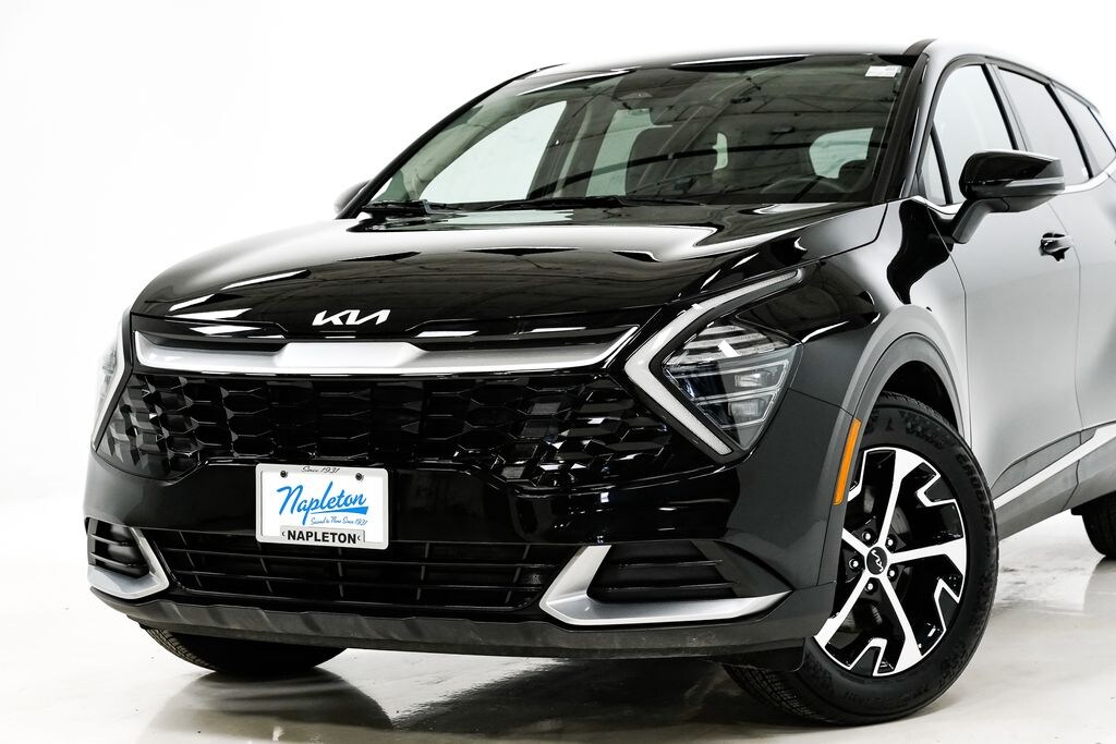 This Sportage is well equipped with Apple CarPlay & Android Auto, Front dual zone A/C, Heated Front Bucket Seats, 4-Wheel Disc Brakes, 6 Speakers, ABS brakes, Air Conditioning, Alloy wheels, AM/FM radio: SiriusXM, Auto High-beam Headlights, Automatic temperature control, Brake assist, Bumpers: body-color, Carpeted Floor Mats, Compass, Delay-off headlights, Driver door bin, Driver vanity mirror, Dual front impact airbags, Dual front side impact airbags, Electronic Stability Control, Emergency communication system, Four wheel independent suspension, Front anti-roll bar, Front Bucket Seats, Front Center Armrest, Fully automatic headlights, Heated door mirrors, Heated front seats, Illuminated entry, Leather Shift Knob, Leather steering wheel, Leatherette Seat Trim, Low tire pressure warning, Navigation System, Occupant sensing airbag, Outside temperature display, Overhead airbag, Overhead console, Panic alarm, Passenger door bin, Passenger vanity mirror, Power door mirrors, Power driver seat, Power steering, Power windows, Radio: AM/FM/HD Audio System, Rain sensing wipers, Rear anti-roll bar, Rear seat center armrest, Rear side impact airbag, Rear window defroster, Rear window wiper, Remote keyless entry, Security system, Speed control, Speed-sensing steering, Split folding rear seat, Spoiler, Steering wheel mounted audio controls, Tachometer, Telescoping steering wheel, Tilt steering wheel, Traction control, Trip computer, Turn signal indicator mirrors, Variably intermittent wipers, and Wheels: 18" x 7.5J Machined Alloy.