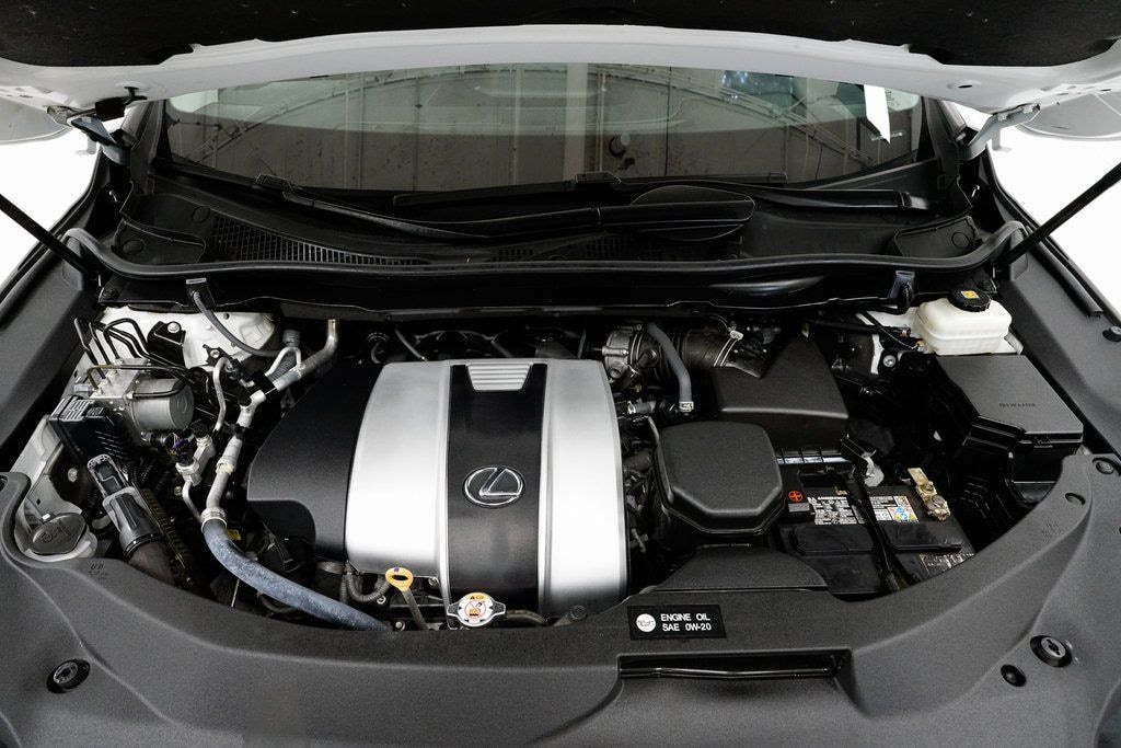 This RX is well equipped with Apple CarPlay/Android Auto, Exterior Parking Camera Rear, Heated Front Seats, Power Liftgate, 18" Aluminum Wheels, 3.329 Axle Ratio, 4-Wheel Disc Brakes, 9 Speakers, ABS brakes, Air Conditioning, Alloy wheels, AM/FM radio: SiriusXM, AM/FM/CD Radio, Anti-whiplash front head restraints, Auto High-beam Headlights, Auto-dimming Rear-View mirror, Automatic temperature control, Brake assist, Bumpers: body-color, CD player, Compass, Delay-off headlights, Driver door bin, Driver vanity mirror, Dual front impact airbags, Dual front side impact airbags, Electronic Stability Control, Emergency communication system, Four wheel independent suspension, Front anti-roll bar, Front Bucket Seats, Front Center Armrest, Front dual zone A/C, Front reading lights, Fully automatic headlights, Garage door transmitter: HomeLink, Genuine wood console insert, Genuine wood door panel insert, Heated door mirrors, Illuminated entry, Knee airbag, Leather Shift Knob, Leather steering wheel, Low tire pressure warning, NuLuxe Seat Trim, Occupant sensing airbag, Outside temperature display, Overhead airbag, Overhead console, Panic alarm, Passenger door bin, Passenger vanity mirror, Power door mirrors, Power driver seat, Power passenger seat, Power steering, Power windows, Radio data system, Rain sensing wipers, Rear anti-roll bar, Rear reading lights, Rear seat center armrest, Rear side impact airbag, Rear window defroster, Rear window wiper, Remote keyless entry, Security system, Speed control, Speed-sensing steering, Split folding rear seat, Spoiler, Steering wheel mounted audio controls, Tachometer, Telescoping steering wheel, Tilt steering wheel, Traction control, Trip computer, Turn signal indicator mirrors, and Variably intermittent wipers.