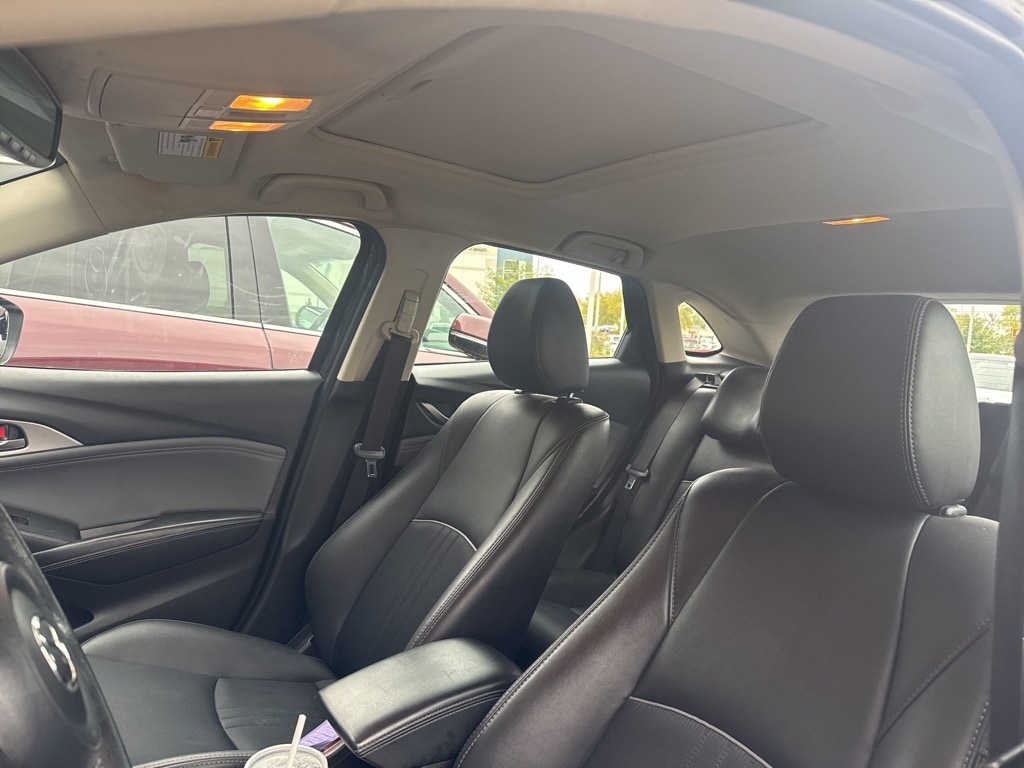 This Mazda CX-3 is well equipped with Preferred Equipment Package (BOSE 7-Speaker Audio Sound System, Power Sliding-Glass Moonroof w/1-Touch-Open, HD Radio, and SiriusXM Satellite Radio), 18" x 7" Aluminum Alloy Wheels, 4-Wheel Disc Brakes, 4.325 Axle Ratio, 6 Speakers, ABS brakes, Aha Internet Radio, Air Conditioning, Alloy wheels, AM/FM radio, Automatic temperature control, Brake assist, Bumpers: body-color, Delay-off headlights, Driver door bin, Driver vanity mirror, Dual front impact airbags, Dual front side impact airbags, E911 Automatic Emergency Notification, Electronic Stability Control, Emergency communication system: MAZDA CONNECT, Exterior Parking Camera Rear, Front anti-roll bar, Front Bucket Seats, Front Center Armrest, Front reading lights, Front wheel independent suspension, Fully automatic headlights, Heated door mirrors, Heated Front Bucket Seats, Heated front seats, Illuminated entry, Infotainment System Voice Command, Leather Shift Knob, Leatherette Upholstery, Low tire pressure warning, Machine Gray Metallic Paint, Occupant sensing airbag, Outside temperature display, Overhead airbag, Overhead console, Pandora Internet Radio, Panic alarm, Passenger door bin, Passenger vanity mirror, Power door mirrors, Power steering, Power windows, Radio Broadcast Data System Program Information, Radio data system, Radio: AM/FM Modular Audio System, Rain sensing wipers, Rear seat center armrest, Rear window defroster, Rear window wiper, Remote keyless entry, SMS Text Msg Audio Delivery & Reply, Speed control, Speed-sensing steering, Split folding rear seat, Spoiler, Steering wheel mounted audio controls, Stitcher Internet Radio, Tachometer, Telescoping steering wheel, Tilt steering wheel, Traction control, Trip computer, Turn signal indicator mirrors, and Variably intermittent wipers.