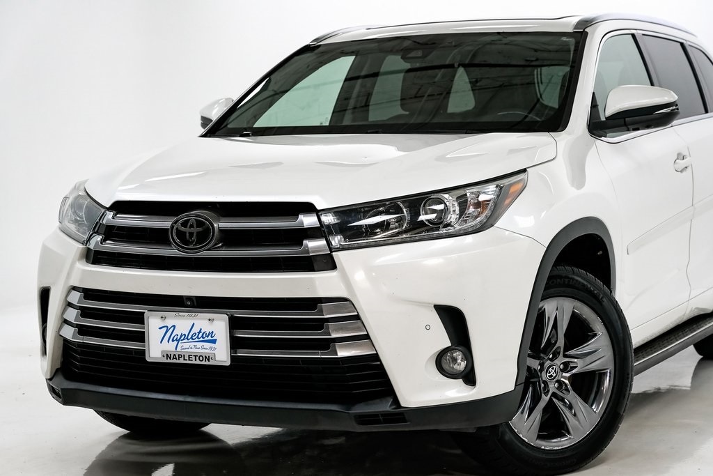 This Highlander is well equipped with AWD, 12 Speakers, ABS brakes, Active Cruise Control, Alloy wheels, Electronic Stability Control, Front dual zone A/C, Heated door mirrors, Heated front seats, Heated rear seats, Heated/Ventilated Front Bucket Seats, Illuminated entry, Low tire pressure warning, Navigation System, Perforated Leather Seat Trim, Power Liftgate, Power moonroof, Radio: Entune Premium JBL Audio w/Nav & App Suite, Remote keyless entry, Traction control, 3.003 Axle Ratio, 3rd row seats: split-bench, 4-Wheel Disc Brakes, Air Conditioning, AM/FM radio: SiriusXM, Auto High-beam Headlights, Auto-dimming Rear-View mirror, Automatic temperature control, Brake assist, Bumpers: body-color, CD player, Delay-off headlights, Driver door bin, Driver vanity mirror, Dual front impact airbags, Dual front side impact airbags, Emergency communication system: Safety Connect, Exterior Parking Camera Rear, Four wheel independent suspension, Front anti-roll bar, Front Bucket Seats, Front Center Armrest, Front fog lights, Front reading lights, Fully automatic headlights, Garage door transmitter, Heated steering wheel, Knee airbag, Leather Shift Knob, Memory seat, Occupant sensing airbag, Outside temperature display, Overhead airbag, Overhead console, Panic alarm, Panoramic Moonroof, Panoramic View Monitor, Passenger door bin, Passenger vanity mirror, Power door mirrors, Power driver seat, Power passenger seat, Power steering, Power windows, Rain sensing wipers, Rear air conditioning, Rear anti-roll bar, Rear reading lights, Rear window defroster, Rear window wiper, Reclining 3rd row seat, Roof rack: rails only, Safety Connect, Security system, Speed control, Speed-sensing steering, Split folding rear seat, Spoiler, Steering wheel mounted audio controls, Tachometer, Telescoping steering wheel, Tilt steering wheel, Trip computer, Turn signal indicator mirrors, Variably intermittent wipers, Ventilated front seats, and Wheels: 19" 5-Spoke Dark-Chromtec Alloy.
